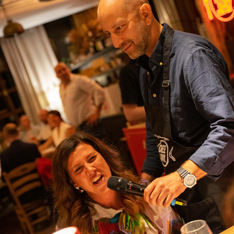 Protagonisti della serata Marisa Passera e Matteo Curti, per un’esperienza che unisce cena e spettacolo in un’atmosfera dinamica e coinvolgente.