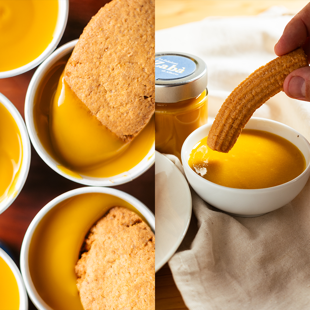 - Zabà si può godere a cucchiaiate; dopo tre ore di freezer diventa un goloso dolce al cucchiaio; caldo è ottimo per accompagnare biscotti, torte o lievitati; a temperatura ambiente è perfetto per variegare gelati o arricchire creme e panna montata.