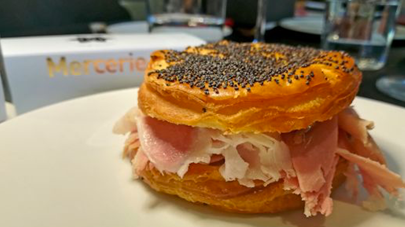 A Roma apre Mercerie: il nuovo format di High Street food ideato da Igles Corelli, chef dello stellato Atman di Villa Rospigliosi (Lamporecchio ndr). Con le stelle michelin conquistate e tatuate sull’avambraccio destro, Igles abbatte i confini e parte da un affaccio meraviglioso sulla storia, con l’obiettivo di portare le sue Mercerie nel mondo. Lo stile appartiene a un’aria retrò non troppo kitsch, per fortuna, con i pavimenti lasciati d’epoca e un’atmosfera 60’s in contrasto alla decisa sobrietà nell’illuminazione. Versatile nell’offerta, elegante ma fruibile nel gusto, Mercerie è un format innovativo, il cui concept è racchiuso nel logo: un bottone con dei richiami a un fiore di loto e tutto, dalle lampade ai prodotti della cucina, passando per il bancone che ti accoglie, ha forma circolare.