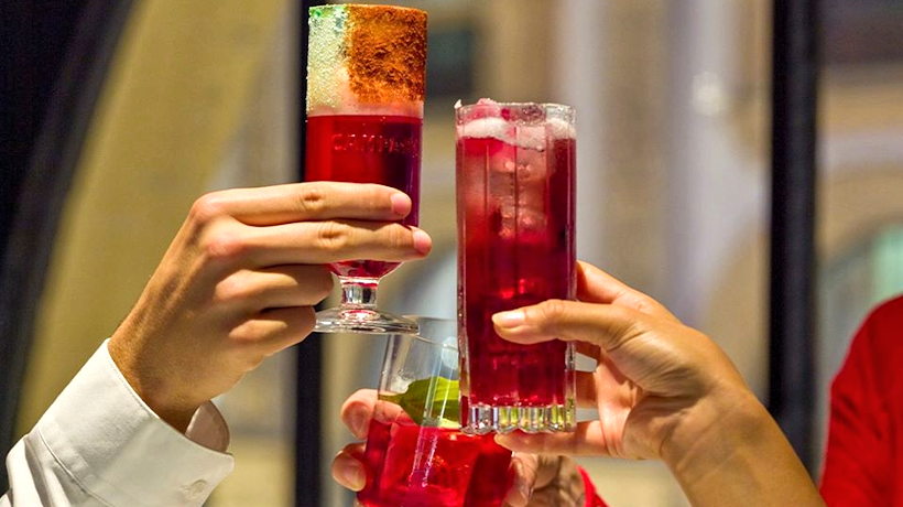 Qui, nel retrobottega Campari, allestì un laboratorio in cui sono “nati” il Bitter all’uso d’Hollanda e il Cordiale, ma la vera intuizione è stata quella di proporre l’amaro prima di pranzo, e non dopo, creando così il rito dell’aperitivo. Dal 1867 il Caffè Campari (a cui nel 1915 venne affiancato il Camparino) ha avuto diversi cambiamenti, pur rimanendo un punto di ritrovo dei milanesi. Un chiaro cambio di rotta, contemporaneo, dove aperitivo, cena e dopo cena sono possibili, ha preso il via sul finire del 2019. Il locale è stato completamente trasformato: si respira un’aria elegante, di classe, direi futurista, non a caso Tommaso Marinetti era un frequentatore, che riprende lo stile (Fortunato Depero) delle straordinarie campagne di manifesti pubblicitari del passato.