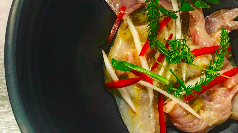 La sua cucina è sorprendente perché nei locali della Versilia i piatti si ripetono, mentre al Merlo ci si può sbizzarrire, a cominciare dai calamari alla carbonara alla ceviche di pescato locale agli agrumi, dai ravioli di astice e la sua bisque allo spiedo di polpo e seppie sporche con gremolata, fino al crudo e cotto di verdure e crostacei con bottarga di tonno (un gran piatto che non rende a prima vista). Non manca un suo must: “piccione cotto nella reticella di maiale”.