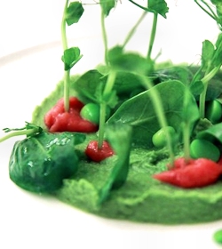 È possibile fare "alta cucina" con prodotti poveri e a prezzi contenuti? E aggiungo a Milano? Senza alcun dubbio! E’ la frase che qui ci sta a pennello, oltre ad essere il titolo del primo piatto in carta: battuta di ombrina, mandarino e pepe fresco. Ci piace assai l’uso abbondante delle verdure stagionali, sia come contorno sia come protagoniste dei piatti, come il Pisello: un giardino dove su un prato di crema di piselli fioriscono i suoi germogli con spinaci novelli e chutney al rabarbaro, che sembra rugiada. Strepitoso il panino al prosciutto scomposto, che lascia all’ospite il piacere di comporlo assaporandone le singolarità: pane croccante ripassato al forno con olio extravergine, erbe di campo, maionese al limone, pomodoro verde e prosciutto cotto “qui”.
