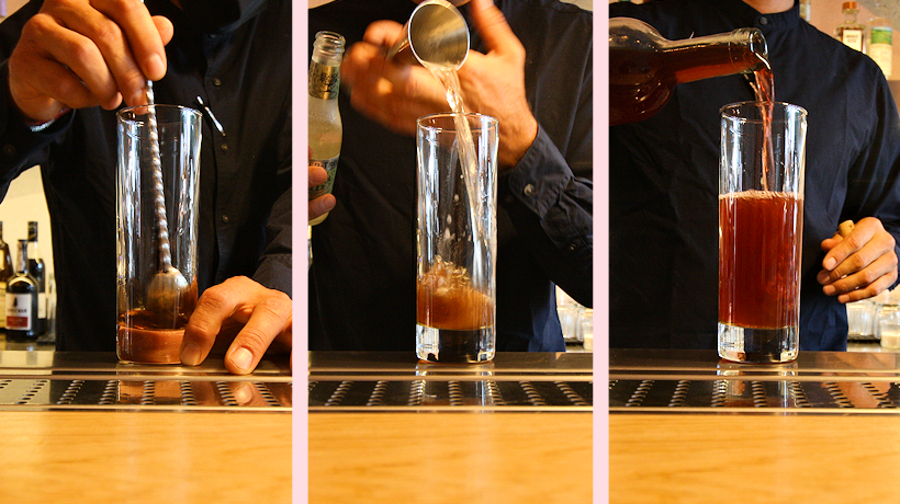- Colmate lentamente con la tisana fredda Sgonfiante Digestiva Fragola, Limone e Zenzero, aggiungete il succo di limone e finite con un top di ginger beer. Servite il mocktail in un bicchiere cilindrico highball con due cubotti di ghiaccio, dopo averlo filtrato con lo strainer.