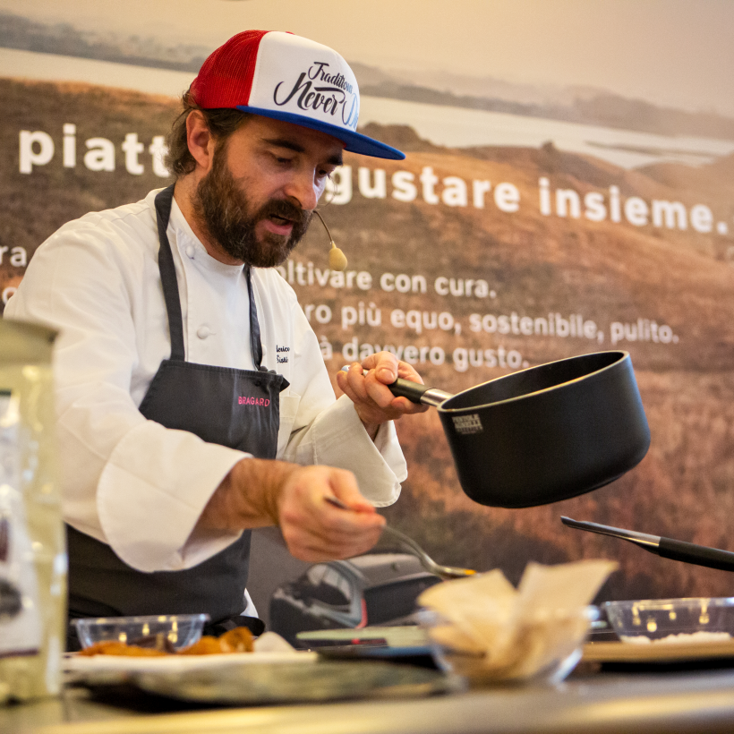 In attesa che apra il suo ristorante a Milano, dove non vediamo l’ora di poterci sedere, abbiamo chiesto allo chef romagnolo di preparare per noi un piatto con i fagioli bianchi di Rotonda perché va bene la tradizione, ma c’è sempre bisogno di un buon interprete che la faccia apprezzare.